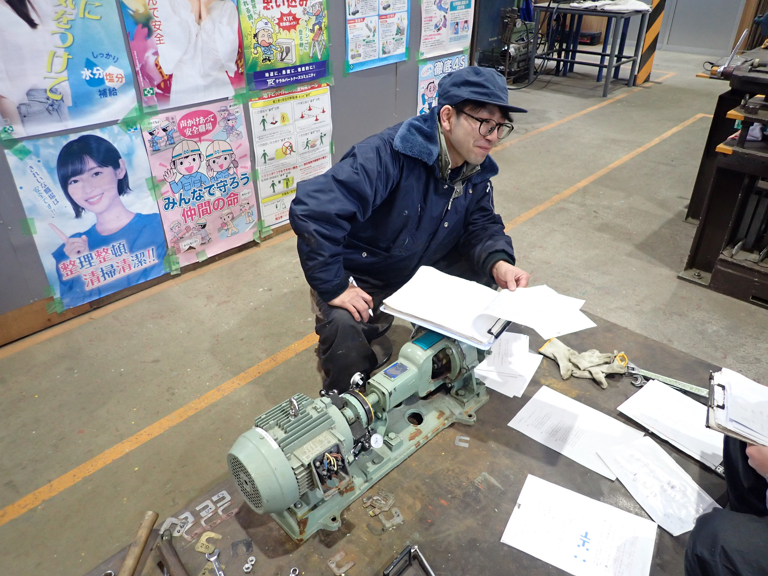 経験のない初心者でも工具の名称から機器の構造まで優しく丁寧に指導しますので工業系の学歴・技術が無くても心配無用です。業務に関する資格は全額会社負担で取得させます。
